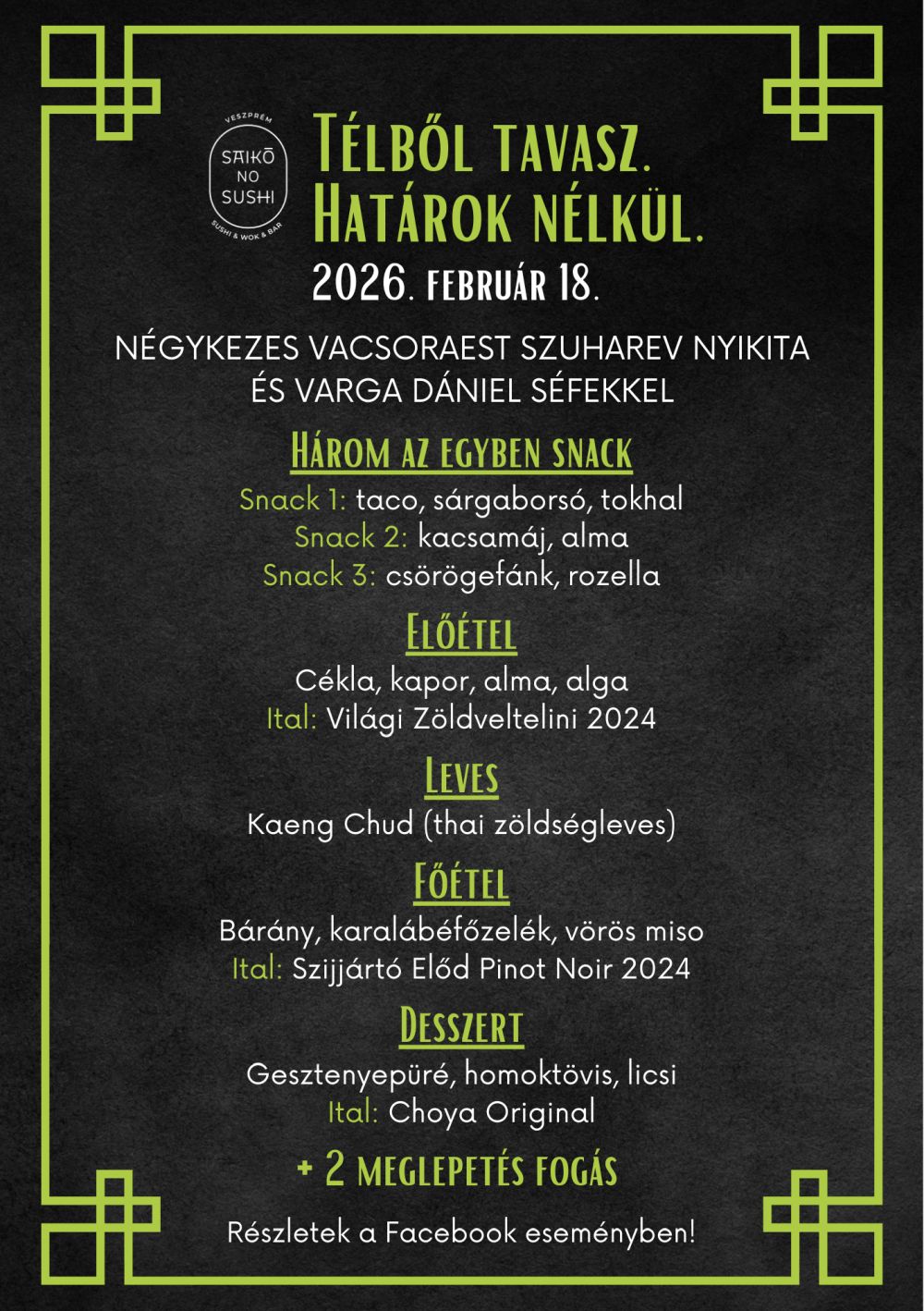 Szeretnénk eloszlatni a tévhiteket, mivel nálunk nem csak sushi létezik. Bár a sushi különlegességek kiemelt szerepet kapnak, étlapunkon a tradicionális japán és a modern ázsiai konyha egyéb ételei is, így wok ételek, levesek, desszertek, valamint izgalmas szezonális ajánlatok is megtalálhatók.